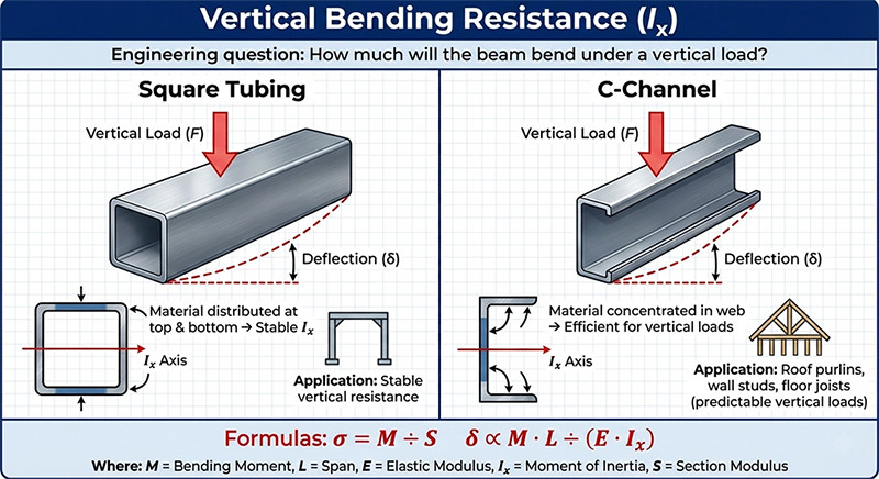 Square vs C-Channel Steel: Bending, Torsion & Stability Guide