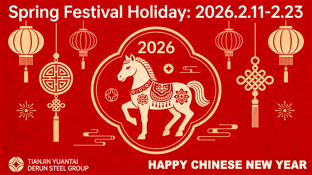 In observance of the 2026 Spring Festival (the Year of the Horse), TIANJIN YUANTAI DERUN STEEL GROUP will be on holiday. Here is our schedule for your reference: